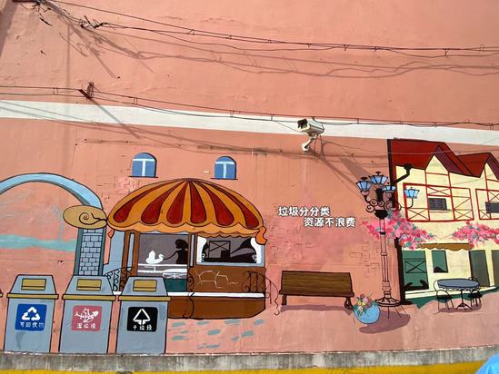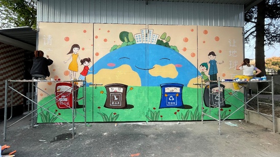 姚瑶和团队成员因此项契机从“校园”走到了“社区”。不同于以往设计作品,这是她们第一次制作“涂鸦墙”,整个团队成员在完成此项工作时伴随着兴奋与激动。“非常珍惜社区这项实践机会,能够将校园中所学运用到实际生活中,并且还得到了社区居民满意的夸奖,学习的知识真正地赋予了我们力量,希望这面涂鸦墙能引领大家积极践行垃圾分类投放”。谈及此次改造项目,姚瑶说道。
