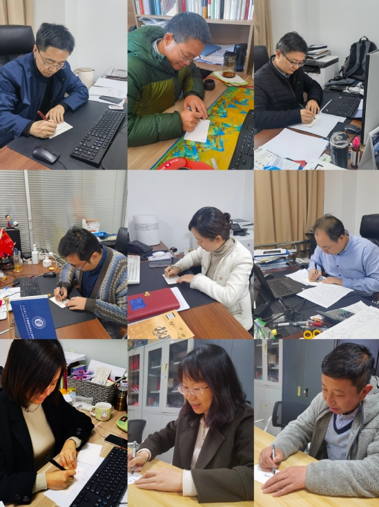学院领导、辅导员们、学生党员向正在积极备考的学子们亲手书写了明信片祝福,向同学们表达了由衷的祝愿。