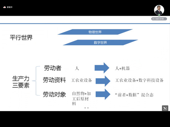 吴文巍教授首先区分了数字科技与数字技术的差异,其次阐述了平行世界的相关内涵并强调数字科技发展在当前引起了生产力的巨大变革,最后以当前AI为例,对数字科技领域引发的一系列现实问题进行了深入的反思。
