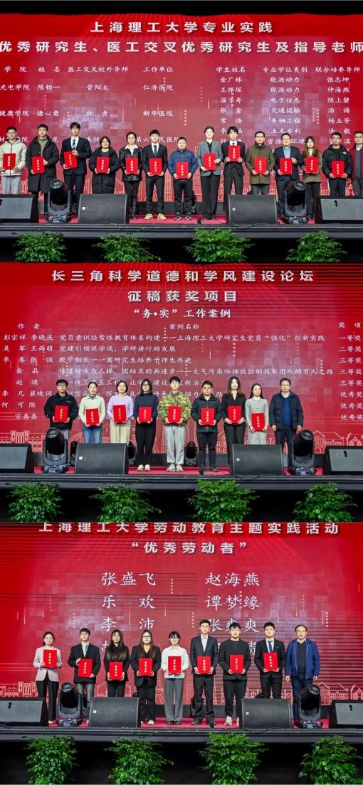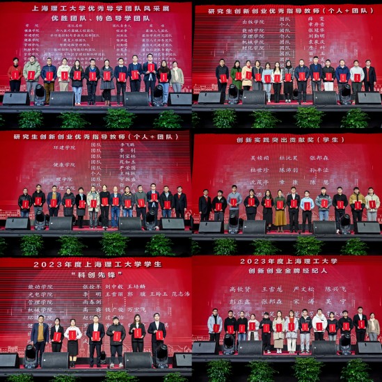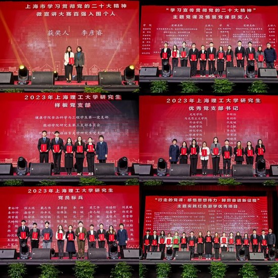 本次颁奖盛典共分为三个篇章,分别是“青衿之志,履践致远 ”“奋楫笃行,臻于至善”“风正扬帆,踵事增华”,颁发了上海市学习贯彻党的二十大精神微宣讲大赛百强入围个人、研究生样板党支部、红色游学优秀项目、优秀导学团队、科创先锋、创新创业优秀指导教师、创新创业金牌经纪人、优秀劳动者等13个奖项。