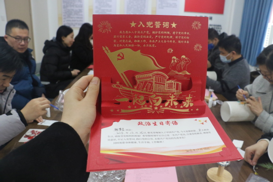 环建学院教工综合党支部在会前为每位党员精心制作了精美的生日贺卡,贺卡上有入党誓词,记录着每个党员的入党纪念日、党龄。活动开始前,党支部书记韩梦莹为本月过政治生日的同志赠送“政治生日”贺卡并寄语支部成员。学院党委书记卢萧提醒党员们不忘初心、牢记使命,勇于担当,切实增强党员的荣誉感、责任感、使命感,发挥党员的先锋模范作用,齐心协力为环建学院发展贡献自己的力量。