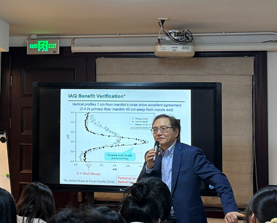 接下来,张建舜在“沪江未来城市建设文苑”作“多尺度下室内空气质量管理——从城市到个人微环境”专题讲座,解析了城市、建筑,再到工位等不同空间和时间尺度下的建筑环境需求,介绍了基于个性化通风系统和人体局部热舒适性的最新研究成果,为控制建筑环境参数提供了新的方法和策略。他还结合雪城大学的实验室研究成果,介绍了能够实时监测、诊断和预测建筑各区域的温湿度、污染物等参数的智能系统,并引入了生物净化的技术,创新性地为实际的建筑健康高效运营管理提供了有力技术支持。环建学院师生参加此次学术交流,副院长王丽慧主持讲座。