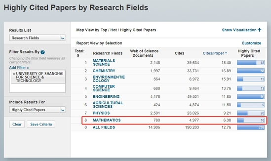农业科学、物理学、数学竞相进入ESI全球排名前1%