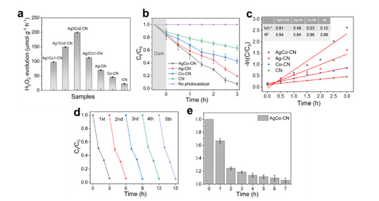 通过原位生成过氧化氢来构筑光Fenton催化反应,为污染物处理提供了一条有效路径。为此,廉孜超等人使用高密度原子分散的碳酸银双位点嵌入石墨相氮化碳(AgCo-CN)光催化剂,提出了一种高效的光自Fenton反应,用于降解污染物。AgCo-CN中的Ag和Co双位点分别在加速光诱导电荷分离和形成自Fenton氧化还原中心方面起着关键作用,AgCo-CN具备有效的降解途径,活性氧的协同作用实现了苯酚的完全矿化,AgCo-CN表现出优异的光催化降解性能和长期活性。该研究为设计高效的光催化剂光自Fenton反应奠定了基础,对于开发新型污水处理方法具有重要的借鉴意义。