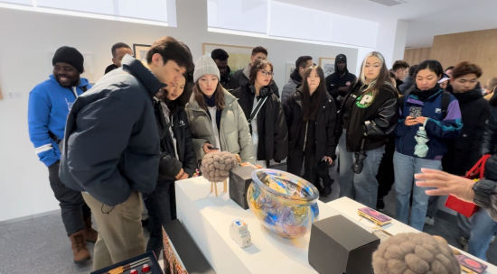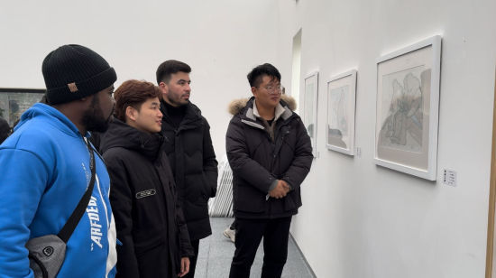 在美术馆大厅,国际学生们在七灶村党总支书记、村委会主任朱庆华的讲解下观摩画作,体验绘画的艺术魅力;在茶馆,国际学生们看到长长的火塘上摆放着土茶具、红枣、红薯、各色水果,纷纷围坐,动手“煮一煮”。