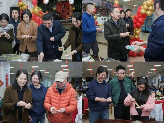 师生一起包饺子,大家围在一起,一边交流着包饺子的技巧,一边分享着家乡的风俗和趣事,在欢声笑语中,一个个形态各异的饺子诞生了。