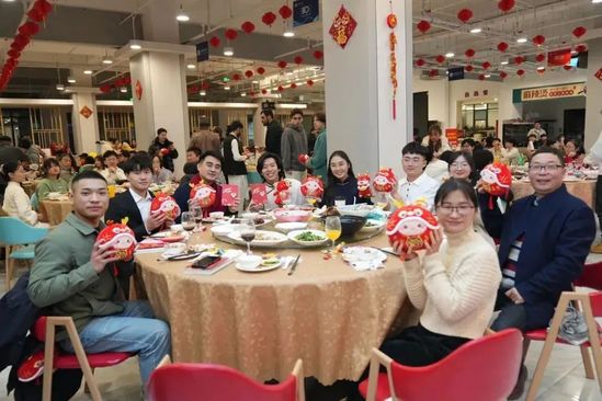 近日,上海财经大学春节留校学生年夜饭活动在第一食堂二楼举行。留校师生、留学生欢聚一堂,一起感受传统中国年的浓浓年味。