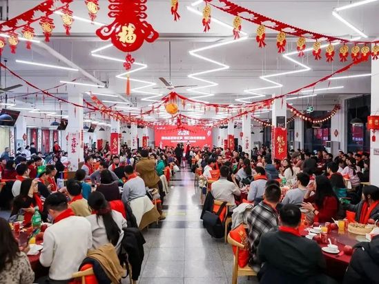 穹顶之下,红色灯笼高高挂,锦簇花团竞相开,对联窗花年味浓。和着一声声新春佳节的问候,定格一张张笑容灿烂的脸庞。大家在欢声笑语中畅叙情谊,展望未来。现场洋溢着欢乐吉祥、暖意盎然的节日氛围。