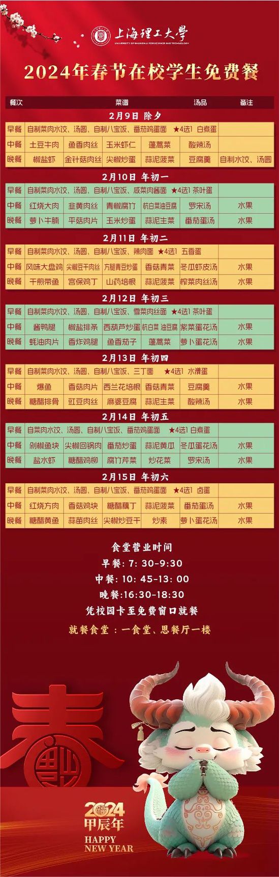 此外,在春节期间,学校还为在校学生提供了免费大餐。