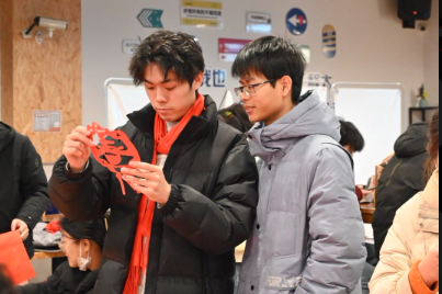 国教学院30多名,来自10多个国家的留学生,来到杭州市泥川村和当地村民一起,剪窗花、写春联、挂灯笼、炒花生、打麻糍、包饺子。他们还向村里的非遗传承人,学习敲龙鼓、制作龙图发糕,提前感受浓浓的中国传统年俗文化。