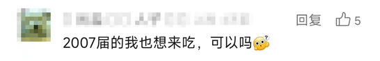看到这里,网友们也表示“毕业了还能来参加吗?单纯来蹭饭的那种”。
