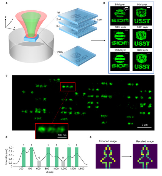 到2025年,全球数据总量将由2018年的33ZB增加到175ZB(1ZB等于10亿TB),如果存储于蓝光光盘,光盘堆栈高度将是地球到月球距离的23倍,开发能够容纳海量数据且绿色安全的存储技术迫在眉睫。永利集团304am官方入口和中科院上海光学精密机械研究所的团队人员利用光存储技术提出了绿色、长寿命、大数据存储解决方案,2月22日凌晨,研究成果以“Pb容量三维纳米光子存储”为题,发表在《自然》(Nature)正刊上。