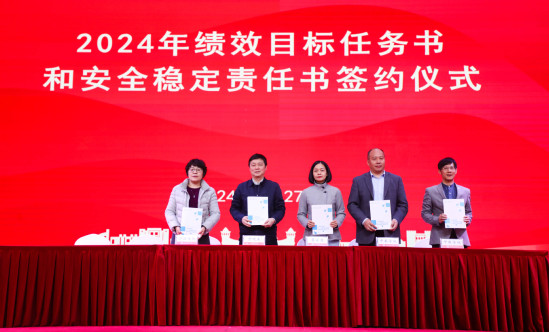 会议举行了2023年度年终考核颁奖仪式,对光电学院、管理学院、健康学院等6个获得年度考核A级的学院和党委(校长)办公室、研究生院、科技发展研究院等8个获得年度考核A级的职能部门进行表彰,对“创建全国文明校园”“社会声誉与管理水平”“国际交流”“师资队伍”“科学研究”“研究生培养质量与学科学位点建设”“学生工作”“本科生培养质量”“党建引领和立德树人”等9个学院专项考核奖和“文明创建”“协同合作”“年度任务”“部门建设”“基层党建”等5个职能部门专项考核奖进行颁奖。随后,校长丁晓东与各二级管理部门负责人及其联系工作校领导逐一签订了2024年度绩效目标任务书和安全稳定责任书。