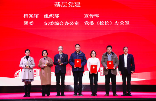 校领导对“党建引领和立德树人”专项考核奖进行表彰