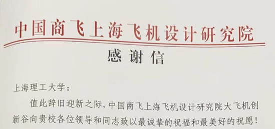 信中提到,2023年,中国商飞上海飞机设计研究院与永利官网联合开展技术研究合作,特别感谢永利官网二位教师为大飞机事业创新发展提供有力支持,希望新的一年继续开展更为深入、更有成效的合作,共同推动民机驾驶舱技术进步与创新发展。
