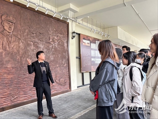 1919年至1920年间,先后六批学生共计656人从黄浦码头乘船赴法留学,其中包括周恩来、邓小平、聂荣臻、蔡和森等。在秦皇岛路码头一层的留法勤工俭学运动浮雕墙前,马克思主义学院教师邢中先为学生们介绍了一百年前一批批青年学子从这里出发,留法勤工俭学,追求新知的历史事迹。