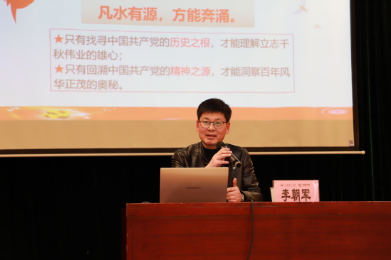 李朝军做“以中国式现代化推进中华民族伟大复兴”首场专题辅导报告,报告以“中国共产党是一个怎样的党”为主线展开,通过具体的历史事件和党员楷模阐述中国式现代化走得通、行得稳,是强国建设、民族复兴的唯一正确道路,希望全体入党积极分子能始终以党员标准要求自己,做到对党忠诚,不怕牺牲,牢记“为中国人民谋幸福,为中华民族谋复兴”的初心和使命。