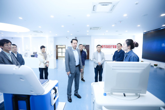 座谈会前,潘旭山一行参观了高端医疗装备创新中心、智能制造实验室、机器智能研究院和沪江国际文化园。