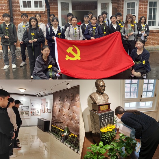 报告结束后,学员分组赴刘湛恩烈士故居红色文化主题馆开展祭扫活动。此次活动巧妙融合党课内容与故居文化,开展“实景党课”。学员们置身于这片历史厚重的圣地,参观馆内红色文化主题展览,深入了解刘湛恩烈士以及沪江大学其他烈士的英勇爱国事迹,深刻领悟他们献身救国的革命精神,汲取青春奋进的强大力量。在庄重的祭扫仪式中,学员们怀着崇敬之情,向刘湛恩烈士雕像敬献鲜花并行礼,以表达敬意。随后,学员集体深情朗诵《英雄祭》,礼赞英雄。