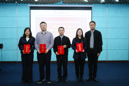 会上,学生工作部(处)就2023届永利官网毕业生整体就业情况做了汇报。校团委书记刘威宣读表彰名单并为“校就业工作先进个人”“校就业工作先进集体”和“上海市就业工作优秀典型”获奖个人和集体颁奖;规划发展处处长宇振盛宣读表彰名单并为“职规赛校赛优秀指导教师”“职规赛校赛优秀组织”“职规赛市赛优秀就业指导教师”“职规赛市赛教师赛道铜奖”和“职规赛市赛优秀组织奖”获奖个人和组织颁奖,本科生院院长甘屹宣读“教育部第二期供需对接就业育人项目立项名单”,副校长张华为立项学院颁发铜牌。