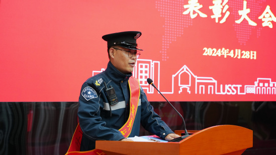“最美校园卫士”巡逻班领班李红义分享了帮助学生寻找失物的经历,用实际行动将师生冷暖系于心间,第一时间积极响应师生的诉求,为师生筑牢安全屏障,建设平安上理校园。