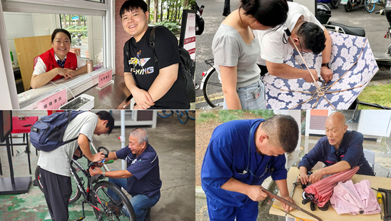 眼镜清洗、雨伞修理、自行车与小家电维修活动现场