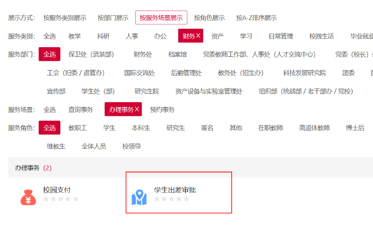 学生如需因公出差,也需完成出差审批,学生登录后,选择“学生出差审批”,进行填报。