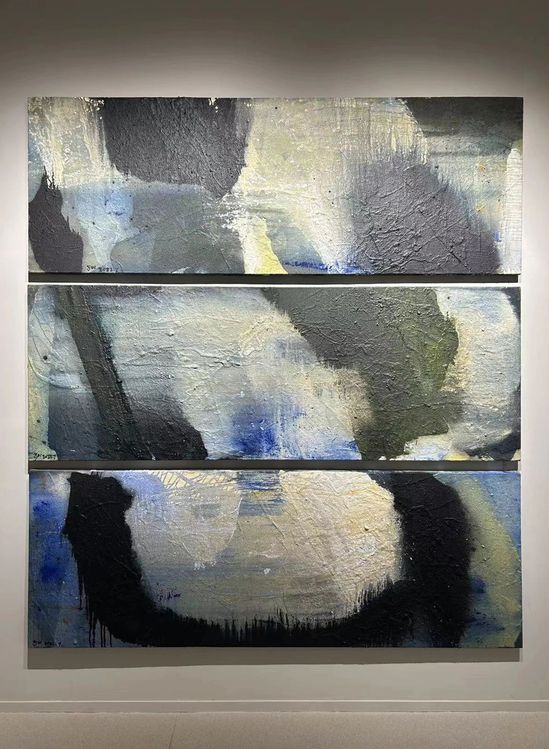 余威自1999年起开始非具象探索,2004年彻底摒弃了具象风格创作,至今已有20年的艺术历程。他的艺术实验跨越了多个系列,从涂鸦式线条到网格式层次,再到书法元素的融合,其个人风格在东方文化意蕴和中式审美倾向中逐渐成熟。本次展览的作品在画面制作、色彩运用和气韵格局上以全新的方式呈现,余威运用繁复的手法,通过多达十几遍的覆盖和遮蔽,创造出丰富的质感与肌理。色块的厚重、痕迹的流淌与色粉的闪烁,共同营造出引人入胜的视觉效果。2022年之后,他的作品色彩变得更加鲜亮透彻,用笔更加酣畅淋漓,偶发效果与颜料流淌的结合,形成了干湿浓淡、虚实相济的视觉层次,让人联想到传统水墨艺术的墨分五色。“70后”一代抽象艺术家余威个人风格逐渐成熟,其艺术实践不仅延续了西方抽象表现主义的余韵,更融合了东方书法传统的中式审美,已逐渐成为上海乃至中国抽象艺术发展的重要力量。
