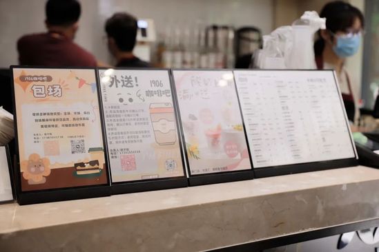 此外,记者注意到这家咖啡吧还可以进行校内范围的“外送”,外送人员也是学生。“我们有专门的物流团队,都是以学生为主的。在手机上面可以下单,咖啡吧、超市等都是可以外送的,外送服务是从这两年开始的。”