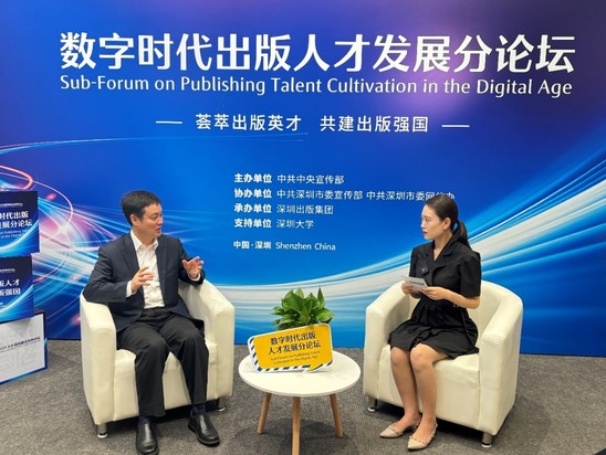 在分论坛期间,丁晓东接受了中国出版传媒商报的(视频)专访。他表示,科技兴国、文化强国是时代的必然选择,高校要主动对接文化强国战略,加快文化的数字化赋能,深入推进文工艺交叉融合。出版关乎国家文化软实力,肩负着国家文化内容生产与传播的重任,是迎接和拥抱数字化机遇和挑战的重要领域,数字时代背景下探讨出版人才有何新要求、如何培养数字出版人才、如何推进出版产业与人才的双向奔赴等话题具有重要意义。在谈到出版人才引进、培养和发展时,他表示,在教育、科技、人才三位一体协同发展的格局中,人才是动力源泉和关键要素,培养高质量人才是出版教育工作的重点。学校注重推动出版与学校理工科的融合,以跨学科平台和团队引人育人;以破学科的圈、破产教的圈、破技术的圈的“破圈”方式,培育具有较高数智素养、数智能力的跨学科出版人才。在谈到人工智能时代,何为优秀出版人才时,他表示,要注重拥抱AI,以数字技术丰富出版的内容与形式,全方位赋能出版,抢占数智时代出版发展制高点;要能够理解并高效、精准、符合伦理地使用智能技术,善用智能辅助创作、决策、营销、服务。