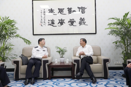 5月29日上午,上海市公安文保分局安申良政委来访,党委副书记、副校长盛春接待,保卫部(处)负责人陪同座谈。