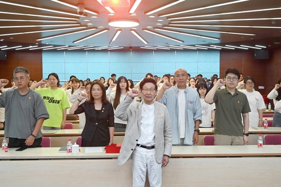 随后,全体毕业生党员在鲜艳的党旗下高举右拳,重温入党誓词。那一句句嘹亮的宣誓词,震动着澎湃的使命初心,仰望心空,脚踏大地,用誓言再一次坚定理想信念。