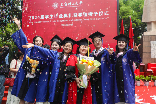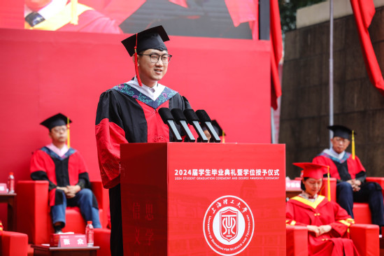 校园的每个角落,都留下了上理学子奋斗进取的足迹,毕业生代表与大家分享关于他们的成长故事和对青春最美好的回忆。健康学院博士毕业生信保全分享了求学经历,表达了对母校的感谢和对未来的期许,他将在学术研究中继续保持严谨和创新,坚持理想、勇敢追梦。
