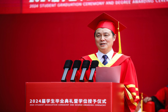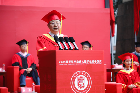 “我希望以更具象的透视,让同学们认清新质生产力之于上理学子的逻辑与维度,在新的窗口期,帮助即将迈向社会的你们洞见变革的信号,抓住新机遇开创不一样的未来。”在毕业典礼上,校长丁晓东从“何谓新质生产力”到“上理学子该何为”,勉励毕业生们无论从事任何工作,都要去找寻和探索属于自己行业的“新质”要素。
