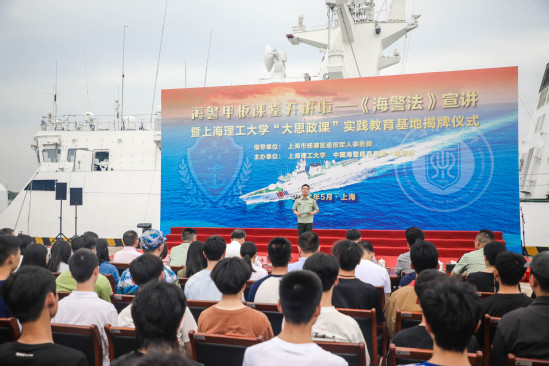 仪式结束后,中国海警局直属第一局某部执法员们开始海警甲板课堂第一讲授课。他们以中国海警历史沿革、《海警法》的诞生、《海警法》背后的大国自信、海警执法员战风斗浪的故事为主线进行讲述,使广大师生在现场讲述和互动交流中对海警建设发展、海警法以及海上执法工作有了更加深刻的认识,活动现场反响热烈。