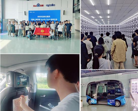 第二站师生们来到百度阿波罗园区,园区于2021年7月28日正式落地嘉定国际汽车城,是百度继北京、广州后又一个在超一线城市打造的智能网联生态高地。阿波罗园区包含六大元素,即聪明的车、智慧的路、高精的图、智能的云、科技的城、连接的人。