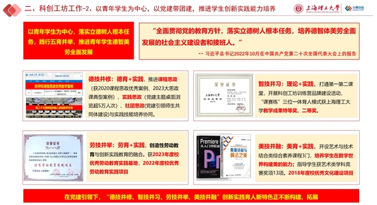 公共实验中心一支部高举习近平新时代中国特色社会主义思想伟大旗帜,围绕立德树人根本任务,以高质量培养具有家国情怀的高素质创新实践人才为使命,在图文信息党委与创新创业学院(公共实验中心)领导下,坚持为党育人、为国育才,把社会主义核心价值体系融入创新实践育人工作全过程,打造红色创新实践指导团队,塑造科创工坊创新实践品牌,聚力红心育人,构建“德技并修,智技并习,劳技并举,美技并融”的创新实践育人特色,播撒创新实践火种,践行实践育人使命。
