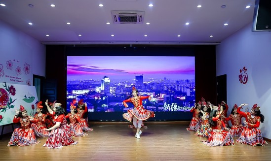 6月3日下午,一批身着鲜艳民族服饰的新疆莎车县中小学师生代表团在莎车县相关领导的带领下,与学校师生开展了一场别开生面的中华传统文化交流活动。副校长张华,教务处、学生工作部(处)副部(处)相关负责人及玛丽亚民族团结工作室负责人、师生代表等参加活动。