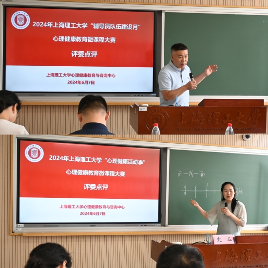 6月7日上午,由学校心理健康教育与咨询中心主办,理学院、沪江学院承办的2024年“心理健康活动季”心理健康教育微课程大赛决赛举行。上海师范大学心理学院副院长陈宁、永利集团304am官方入口马克思主义学院副教授史玉、研究生工作部副部长研究生院副院长王张琦、学生工作部(处)副部(处)长刘伟、沪江学院副院长梁昱、理学院党委副书记李晓庆、心理健康教育与咨询中心主任杨颎等嘉宾和评委出席。