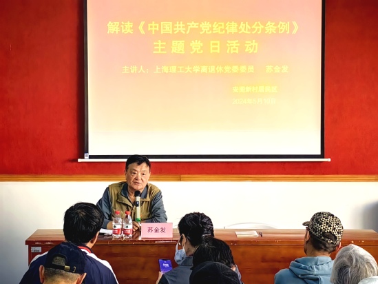 深入基层作宣讲,发挥示范领学。老同志们在抓好自学的同时还发挥优势作用,深入青年师生、社区开展党纪学习教育宣讲。5月29日,“尚理银发”宣讲组9名成员参加了市委讲师团办公室举办的党纪学习教育基层理论宣讲骨干培训,深化了对《条例》的理解运用。宣讲组组长何建中、成员黄慧等在本支部进行宣讲;施小明参加光电学院毕业生党员离校教育,讲授了“党的纪律建设与从严治党”专题党课;宣讲组副组长、离退休党委委员苏金发理论联系实际、深入浅出地为杨浦区安图新村居民解读《条例》;杨佐平同时作为社区宣讲团成员为高行镇东沟居民区多次作党纪学习教育宣讲。截至6月20日,宣讲组成员已开展党纪学习教育宣讲近10次,为培养社会主义事业接班人做出了应有贡献。