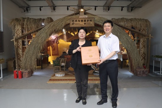 中午,陈国强陪同丁晓东一行来到海南师大调研。海南师大党委书记许玫陪同参观了学校美术馆,观看了黎锦文化保护与传承创新设计成果展。丁晓东、陈国强一行详细了解了黎锦文化的保护、传承、研究、成果转化等方面的情况。许玫向丁晓东赠送了黎锦文创产品。