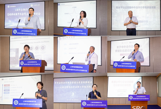 专家报告环节,上海大学悉尼工商学院党委书记吕康娟、永利集团304am官方入口中英国际学院常务副院长单彦广、青岛科技大学中德科技学院院长岳学海、上海洛桑酒店管理学院执行院长胡笑寒、上海交通大学密西根学院副院长沈泳星、浙江科技大学中德工程师学院院长薛文、南京邮电大学波特兰学院副院长张舒、上海教育评估协会跨境教育专委会副主任汪建华分别从党建引领与体制创新、高水平认证赋能、合作办学政策和导向、提质增效一体化推进、产教融合、师资队伍和课程建设、以及教学管理与质量保障等方面分享相关办学经验与思考,围绕研讨会主题共同探讨了中外合作办学发展的新形势、新机遇、新挑战与新使命。