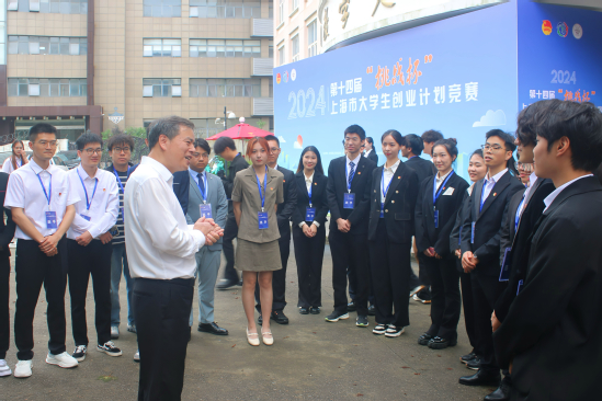 比赛当天,党委副书记、副校长盛春亲临现场慰问参赛团队,与每一位师生进行深入交流,详细询问了项目的准备情况,对团队指导老师的辛勤付出和团队成员的努力拼搏表示肯定与感谢。盛春鼓励同学们要沉着应对、全力以赴在“挑战杯”的舞台上展示上理学子锐意进取、开拓创新的青春风貌,并预祝他们在此次“挑战杯”市赛中取得优异成绩。同时,校团委书记刘威及各项目所在学院的领导、项目负责人和指导教师也纷纷来到现场,为参赛团队提供坚实保障和鼓励。