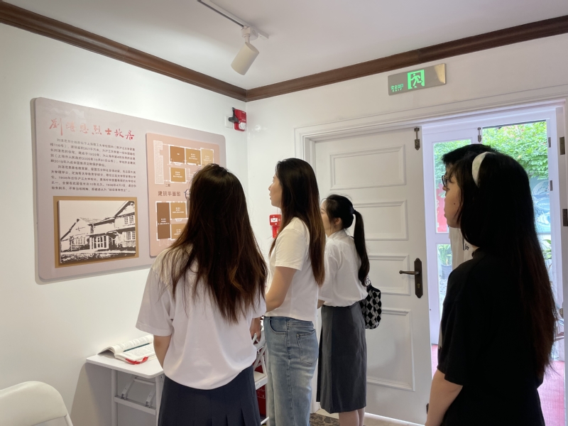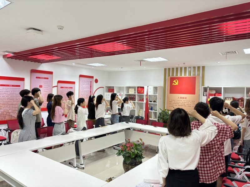 在刘湛恩烈士故居红色文化主题馆,师生通过一幅幅珍贵的历史图片和文献资料,深入地了解英烈事迹,感悟信仰与理想,从红色校史中汲取奋斗力量。 之后,同学们参观了《以案释纪 以案促学——高校违纪案例警示展》,展览以手插绘画的形式展示,师生在对案例的学习和讨论中受警醒、明底线、知敬畏,进一步增强纪律意识、提高党性修养。随后,全体预备党员面对党旗庄严宣誓,表达了为共产主义事业奋斗终生、永葆党员先进性的坚定决心。