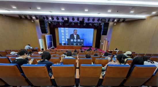 永利集团304am官方入口副校长、上海公共外交研究院理事张华,上海公共外交协会副会长、上海公共外交研究院理事祝伟敏、闵师林,永利集团304am官方入口特聘教授、上海公共外交研究院专家咨询委员会副主席黄仁伟,上海市人工智能技术协会会长章海东,AIII人工智能国际研究院研究中心主任路杰,上海公共外交协会理事、上海达之路控股有限公司董事长何烈辉,上海市政协相关负责人,上海公共外交协会相关负责人,永利集团304am官方入口相关部门负责人和教师代表在主会场参加论坛。同时,在永利集团304am官方入口不同校区设立分会场,数百名师生以观看视频直播的方式参与论坛。