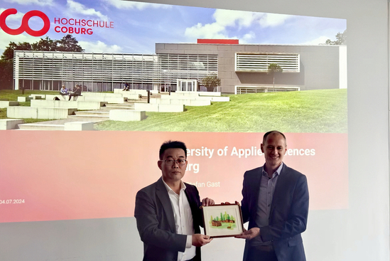 代表团首先访问了科堡应用技术与艺术大学。在访问期间,赵宁与科堡应用技术与艺术大学校长斯蒂芬·卡斯特(Stefan Gast)进行了会晤,系统回顾了双方多年来中德合作办学历程,规划了下一阶段战略合作方向,就推进中德国际交流项目(AIMS)、本科生联合培养、创新创业人才培养、本科生暑期夏令营项目等议题展开了充分交流,并达成了共识。访问期间,代表团一行参观了学校实验室和工作坊,考察了传感器和执行器技术研究中心(ISAT),并看望了2名在研究中心学习的上理工学生。