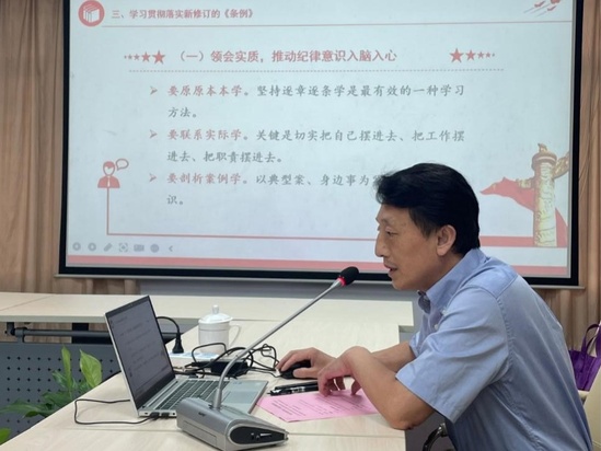在专题党课环节,永利集团304am官方入口科技发展研究院党支部书记、院长刘宝林以《深入学习贯彻党纪处分条例,为高质量发展提供纪律保障》为题为支部党员讲授专题党课。专题党课从深刻认识条例修订的重要意义、准确把握条例修订的重点要点、学习贯彻落实新修订的条例三个方面展开,同时结合典型案例对六大违纪行为进行了深入解读。他强调学习党的纪律建设要做到:领会实质,推动纪律意识入脑入心;对标校正,推动纪律意识走深走实;担当作为,推动纪律意识外化于行。