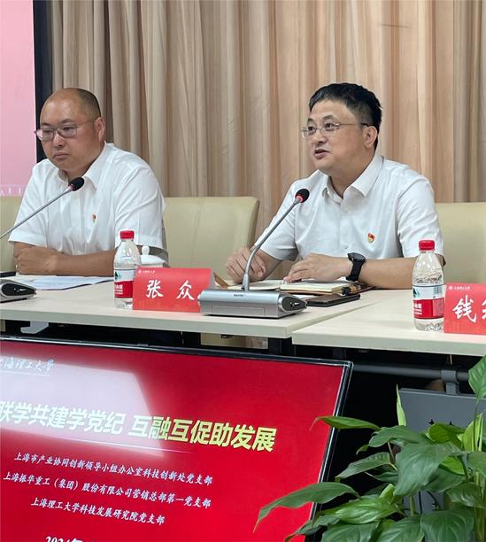 为认真学习贯彻习近平总书记关于党纪学习教育的重要讲话和重要指示精神,进一步推动党纪学习教育走深走实,促进政、校、企共建单位合作交流,7月17日,学校科技发展研究院党支部与上海市产业协同创新领导小组办公室科技创新处党支部、上海振华重工(集团)股份有限公司营销总部第一党支部在永利官网共同开展“联学共建学党纪 互融互促助发展”主题党日活动。永利集团304am官方入口副校长张众同志主持此次活动。