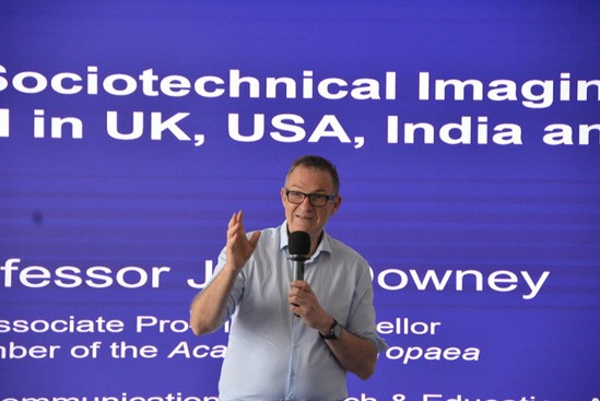 主讲人约翰·东尼作题为“美英中印报纸中生成式人工智能的社会技术想象”的学术讲座。讲座内容深入探讨了生成式人工智能在美国、英国、中国和印度报纸中的表征,分析了这些表征话语体系背后的社会文化因素。他提出,不同国家的新闻媒体在描述和理解生成式人工智能时,反映了各自的社会技术想象和文化心态。讲座内容丰富,视角独特,引发了在场师生的强烈共鸣。