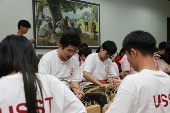 搓、编、压,在专业老师的指导下,师生们学习编织红军草鞋,稻草在同学们手中逐渐变成了结实的草鞋。“记得在革命电影中,红军战士们正是穿着这样的草鞋,一步步踏过了泥泞的沼泽,翻越了皑皑的雪山。”一位同学一边搓着稻草一边感慨道,“红军草鞋既不好编,更不好穿,不防水也不防寒。想象着红军战士们穿着这样的草鞋走过万里长征,我才真正体会到了长征路上的艰难与伟大。这不仅仅是一双鞋,它承载着红军战士们坚定的信念和不屈不挠的精神。”